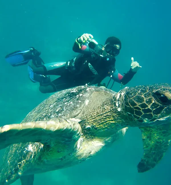 - Avistamiento regular de especies carismáticas: Encuentros frecuentes con tortugas marinas, rayas águila, tiburones de punta blanca y ocasionalmente tiburones de Galápagos.
